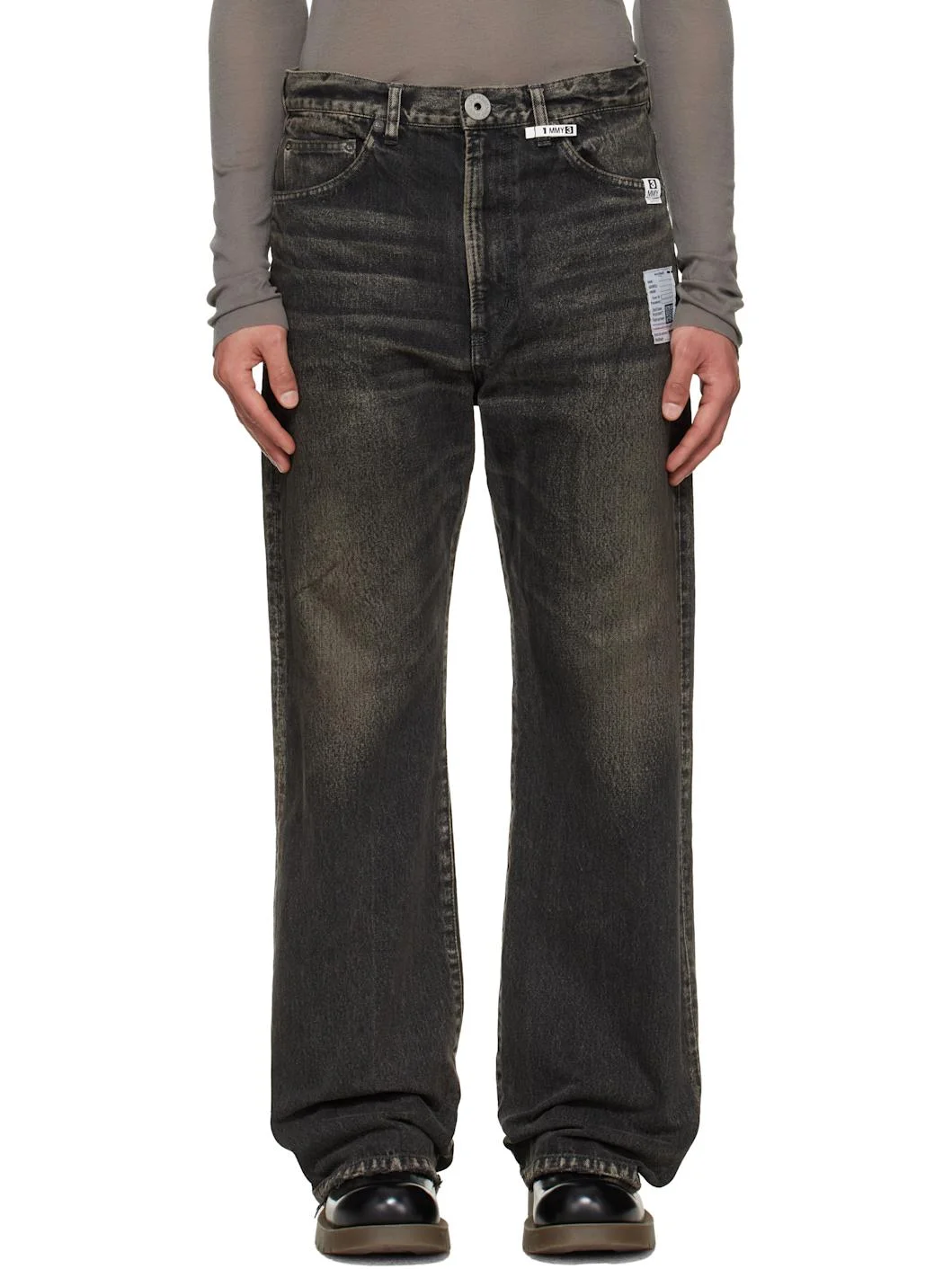 Non-stretch denim jeans. · Fading and whiskering throughout · Belt loops and drawstring at waistband · Five-pocket styling · Zip fly · Logo flags and patch at front · Frayed edge at cuffs · Logo patch at back pocket Supplier color: Black 100% cotton. Made in Japan 261551M186001