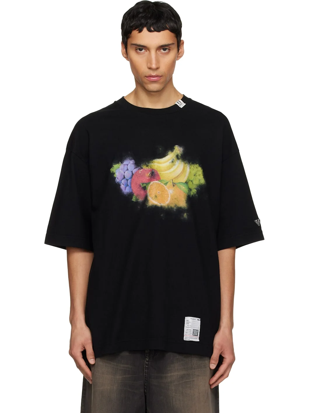 Cotton jersey T-shirt. · Logo flag at rib-knit crewneck · Graphic printed at front · Logo patch at front hem · Tennis-tail hem · Dropped shoulders · Logo patch at sleeve · Text printed at back Supplier color: Black 100% cotton. Made in Japan 261551M213005