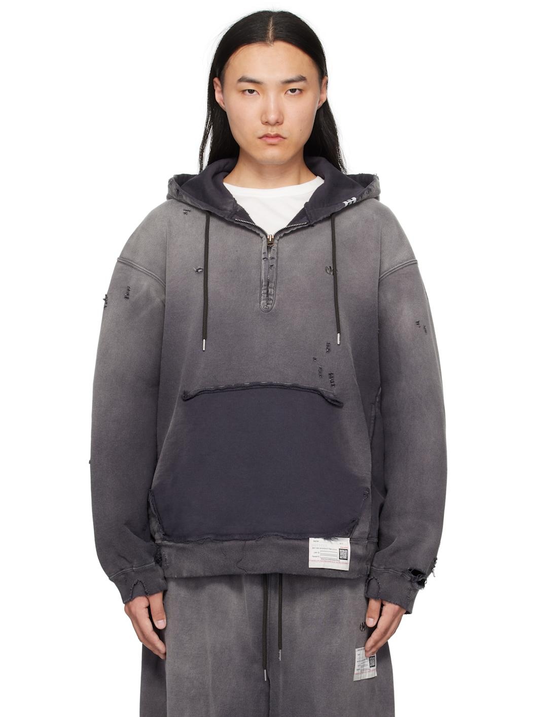 French terry hoodie. Fading, distressing, and exposed seams throughout. · Logo patch and drawstring at hood · Half-zip closure · Logo embroidered at chest · Seam pockets · Logo patch at front hem · Rib-knit hem and cuffs · Dropped shoulders Supplier color: Black 100% cotton. Made in Japan 251551M202005