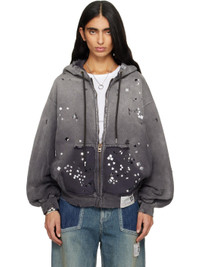 French terry hoodie. · Fading, distressing, and graphic appliques throughout · Drawstring at hood · Zip closure · Logo patch at hem · Rib-knit hem and cuffs · Dropped shoulders Supplier color: Black 100% cotton. Made in Japan 252551F097001