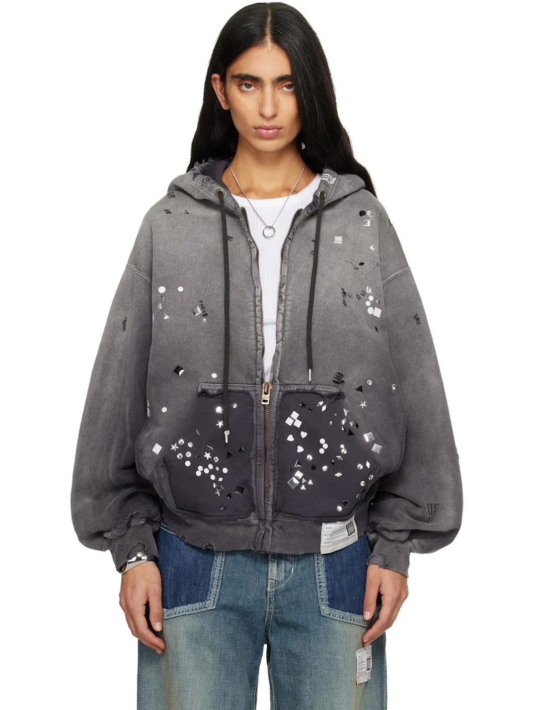 Black Sun Faded Like Embellished Zip-up Hoodie
