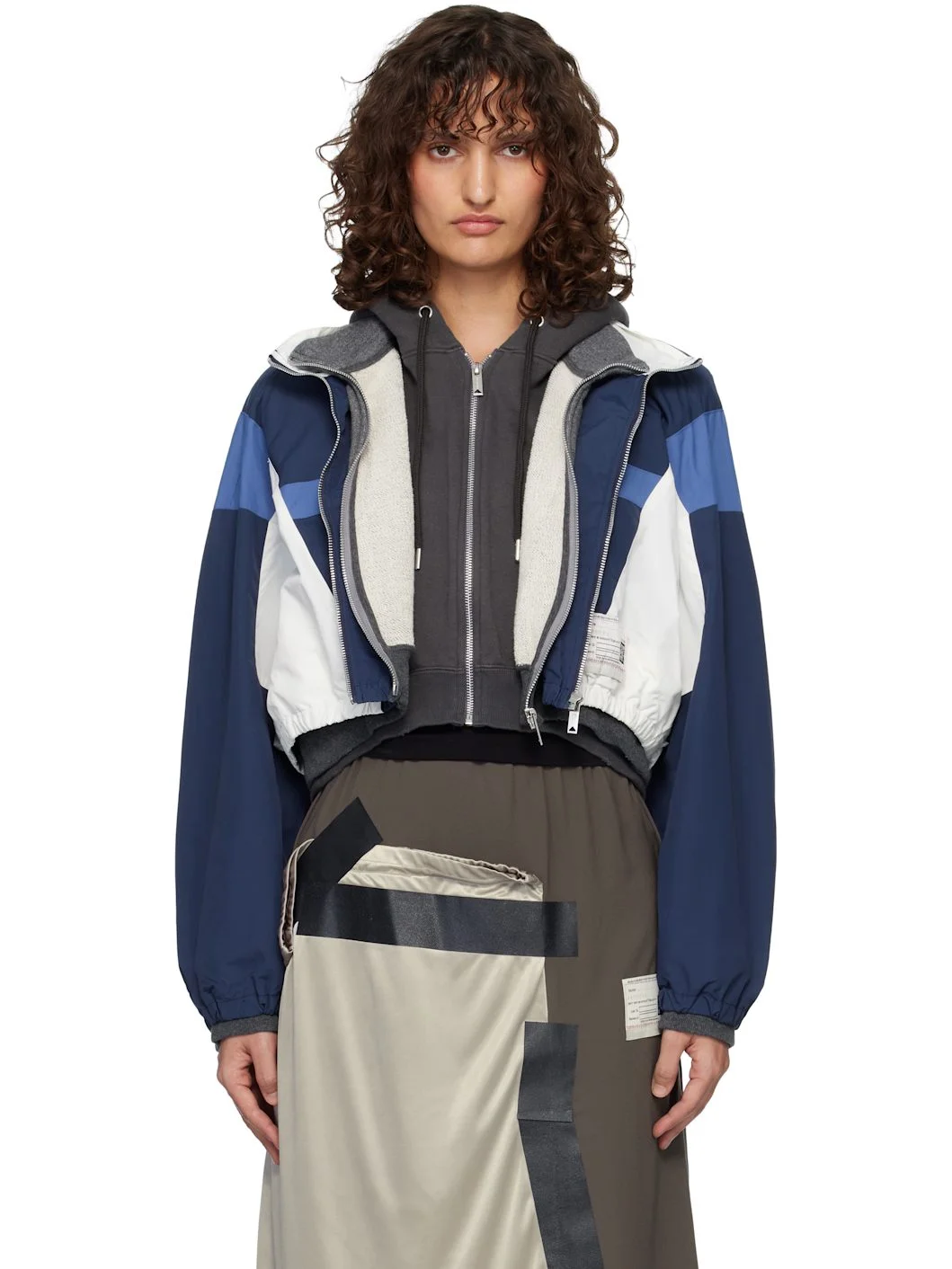 Gray & Navy Triple Layered Nylon Zip-Up Jacket
