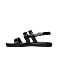 Patent leather sandals in black. · Open round toe · Adjustable pin-buckle slingback strap · Logo patch at padded leather footbed · Stacked leather midsole · Suede outsole with rubber injection Supplier color: Blck Leather. Made in Italy 231140F124007