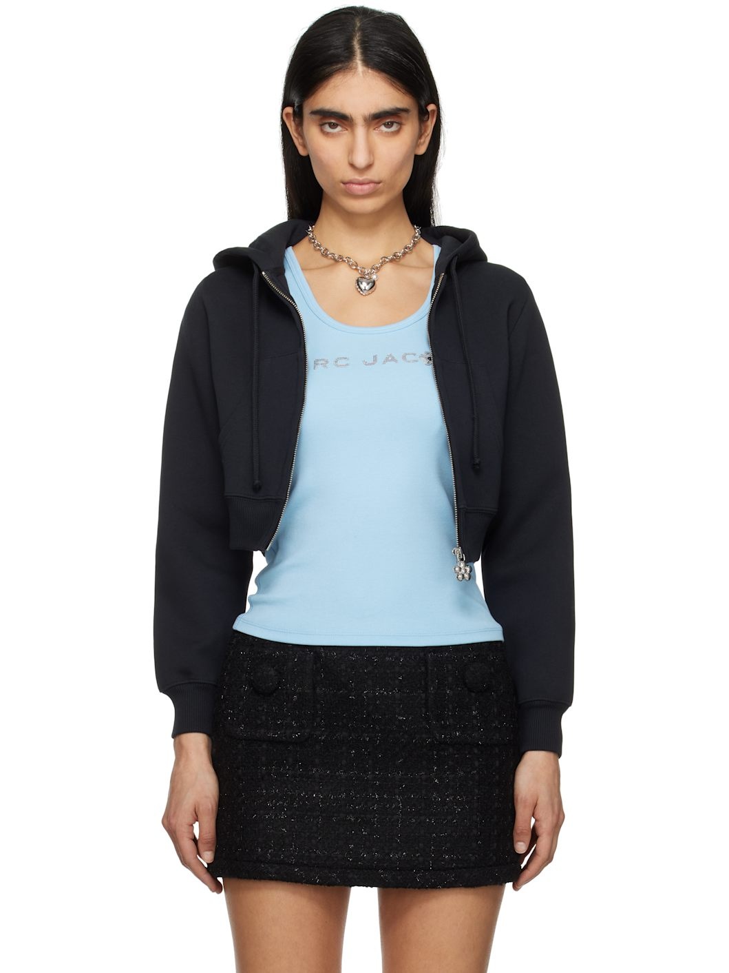 Double-faced cotton jersey hoodie. · Drawstring at hood · Graphic hardware at zip closure · Patch pockets · Rib-knit cropped hem and cuffs · Crystal-cut logo applique at back Supplier color: Black Body: 100% cotton. Trim: 97% cotton, 3% elastane. Made in Portugal 251190F097000