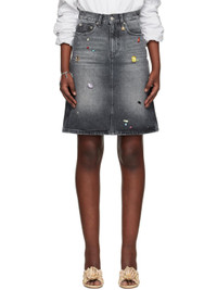 Stonewashed non-stretch denim midi skirt. Fading, whiskering, and hand-sewn crystal-cut appliques throughout. · Belt loops · Five pocket styling · Zip-fly · Leather logo patch at back waistband · Unlined · Logo-engraved silver-tone hardware Supplier color: Bleached black 100% cotton. Made in Turkey 251190F092002