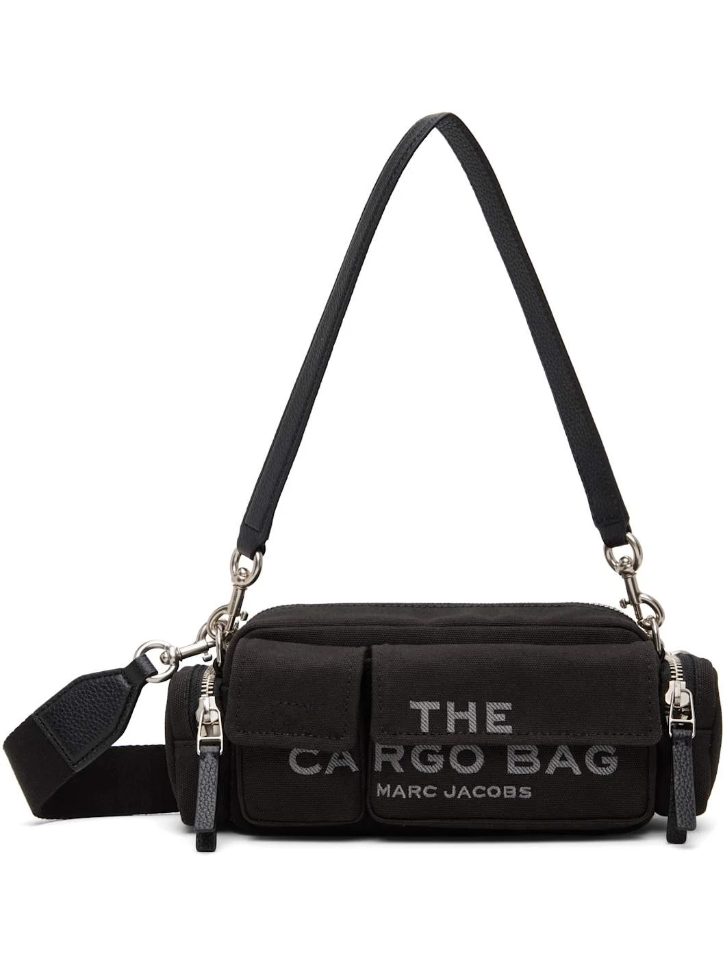 Cotton canvas shoulder bag. · Detachable shoulder strap · Adjustable and detachable crossbody strap · Logo and text embroidered at face · Flap pockets at face · Logo patch at back face · Zip pocket at sides · Zip closure · Zip pocket at interior · Canvas lining · H4" x W11" x D3" Part of THE™ collection. Supplier color: Black Textile. Made in Viet Nam 252190F048023