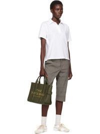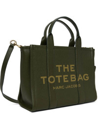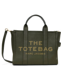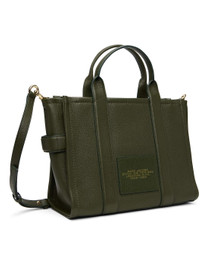 Pebble-grained leather tote in green. · Rolled carry handles · Adjustable and detachable crossbody strap · Text and logo embossed at face · Fixed loop at side · Logo patch at back face · Leather bumper pads at base · Zip closure · Zip pocket and patch pockets at interior · Twill lining · Logo-engraved gold-tone hardware · H10" x W13" x D5.75" Part of THE™ collection. Supplier color: Forest Leather. Made in Viet Nam 252190F049037