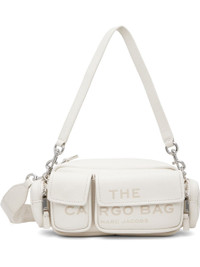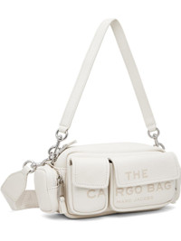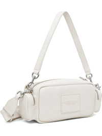 Pebble-grained leather shoulder bag in off-white. · Detachable shoulder strap · Adjustable and detachable logo-woven crossbody strap · Text and logo embossed at face · Flap pockets · Zip pocket at sides · Logo patch at back face · Zip closure · Logo-engraved silver-tone hardware · H5" x W9" x D3" Supplier color: Cotton/Silver Leather. Made in Viet Nam 252190F048035