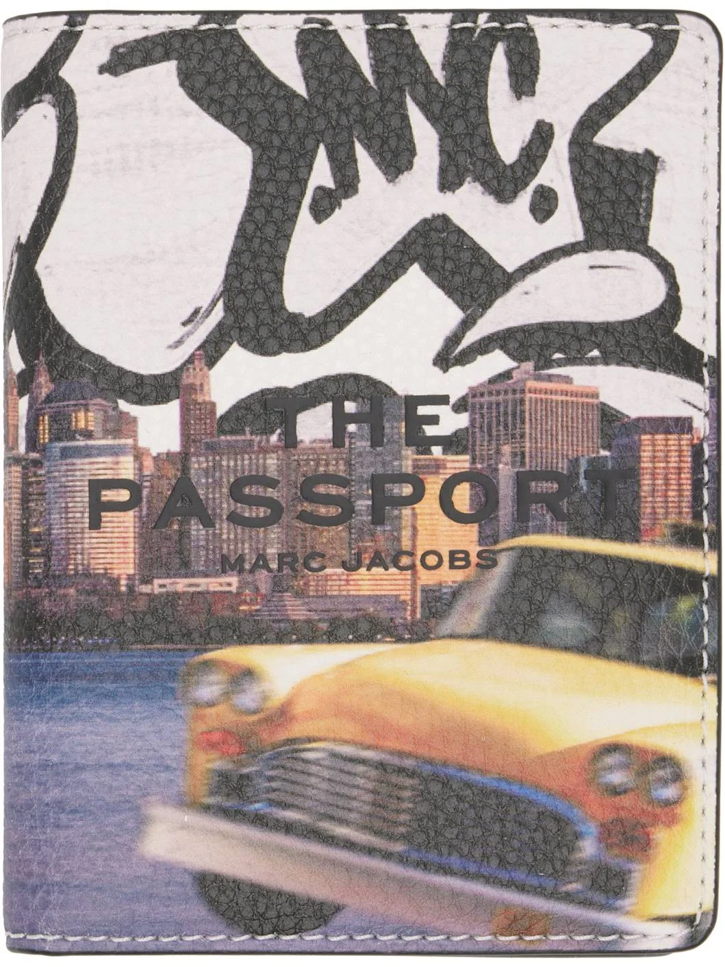 Coated grained leather passport holder. · Graphic pattern printed throughout · Text and logo embossed at face and back face · Four card slots · Two passport slots · Buffed faux-leather interior · Twill lining · H5.5" x W4.25" x D0.75" Part of THE™ City capsule. Wholesale exclusivity at SSENSE. Supplier color: New York City Body: 100% leather. Lining: 100% polyurethane. Made in Viet Nam 261190F039007