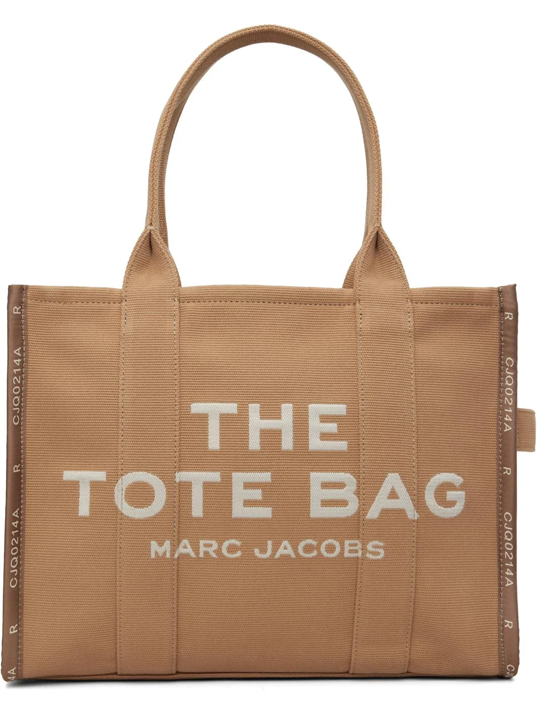 Cotton canvas tote. · Twin shoulder straps · Jacquard logo and text at face · Loop at side · Satin trim with jacquard text at sides · Logo patch at back face · Zip closure · Zip pocket and patch pockets at interior · Unlined · H12" x W16" x D7" Part of THE™ collection. Supplier color: Camel Textile. Made in Viet Nam 261190F049005