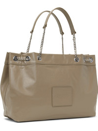Grained leather shoulder bag in taupe. · Sliding curb chain shoulder straps · Text and logo embossed at face · Logo patch at back face · Magnetic closure · Zip and patch pockets at interior · Faille lining · H11" x W18" x D5.5" Supplier color: Cement Leather. Made in Viet Nam 251190F048110