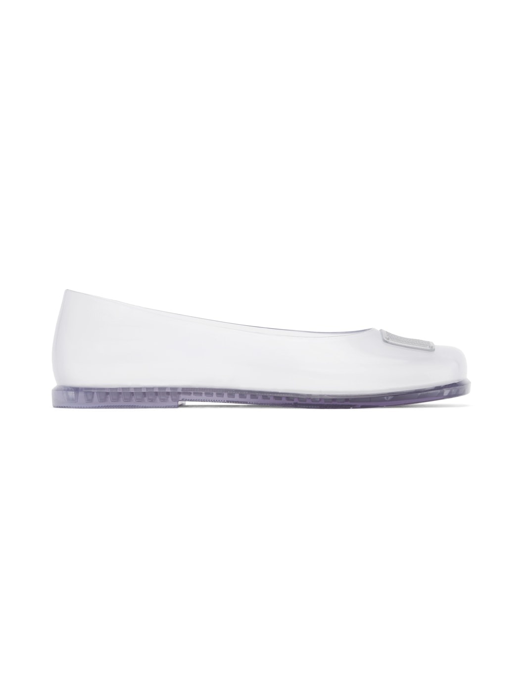 Transparent Melflex® PVC ballerina flats. · Square toe · Logo patch at vamp · Logo embossed at outer side · Logo embossed at padded footbed · Treaded PVC sole Part of the Marc Jacobs x Melissa collaboration. Supplier color: Transparent Polyvinyl chloride. Made in Brazil 242190F118001