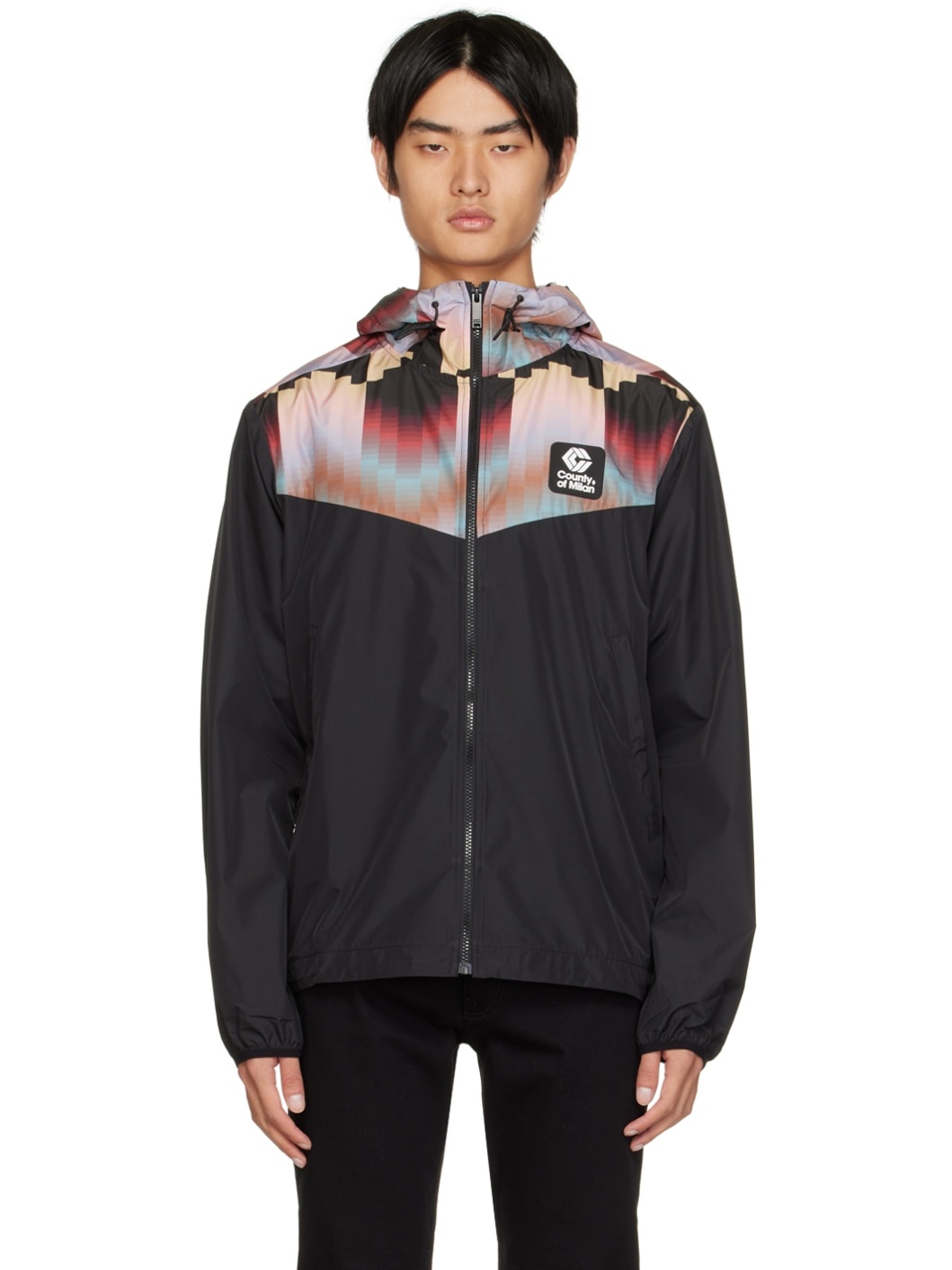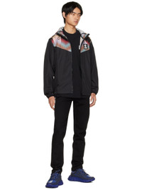 Polyester-blend taffeta jacket. Graphic pattern throughout. · Bungee-style drawstring at hood · Zip closure · Rubberized logo patch at chest · Zip pockets at waist · Elasticized cuffs · Concealed bungee-style drawstring at hem · Unlined Supplier color: Black/Pink 80% polyester, 20% polyurethane. Made in Portugal 222539M180003