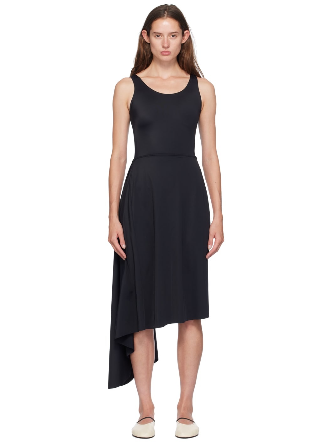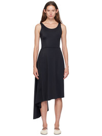 Stretch polyester jersey dress. · Asymmetric half-skirt construction · Scoop neck · Fixed shoulder straps · Low-back · Bodysuit-style lining Supplier color: Black 78% polyester, 22% elastane. Made in Belgium 242189F054001