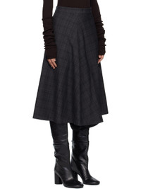 Wool delaine midi skirt. · Check pattern throughout · Integrated dual-hem construction · Pencil skirt at front · Flared skirt at back · Zip closure at back Supplier color: Grey check 100% wool. Made in Romania 261189F092000