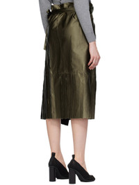 Crinkled silk satin midi skirt. Pleats throughout. · Wrap construction · Wraparound self-tie fastening at waist · Raw edges at hem · Full plain-woven cotton lining Supplier color: Khaki Body: 100% silk. Lining: 100% cotton. Made in Romania 252189F092000