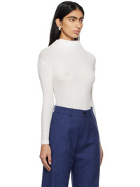 Ribbed tencel jersey T-shirt. · Structured stand collar · Self-tie fastening at keyhole back collar Supplier color: White 88% tencel, 4% polyurethane, 4% cashmere, 4% silk. Made in Romania 241808F110014