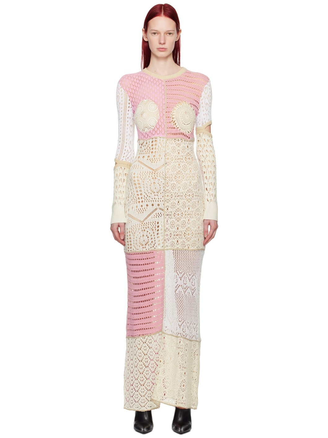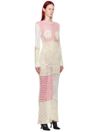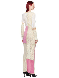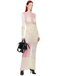 Upcycled crocheted cotton- and acrylic-blend dress in beige and pink. Open crochet detailing and patterns throughout. · Patchwork construction · Rib knit crewneck and cuffs · Logo patch at front · Cutout at sleeves Each item is unique. Please note coloration and finishings may vary. Supplier color: Beige Body 1: 50% cotton, 50% acrylic. Body 2: 100% cotton. Body 3: 100% cotton. Body 4: 100% cotton. Made in Italy 241020F055004