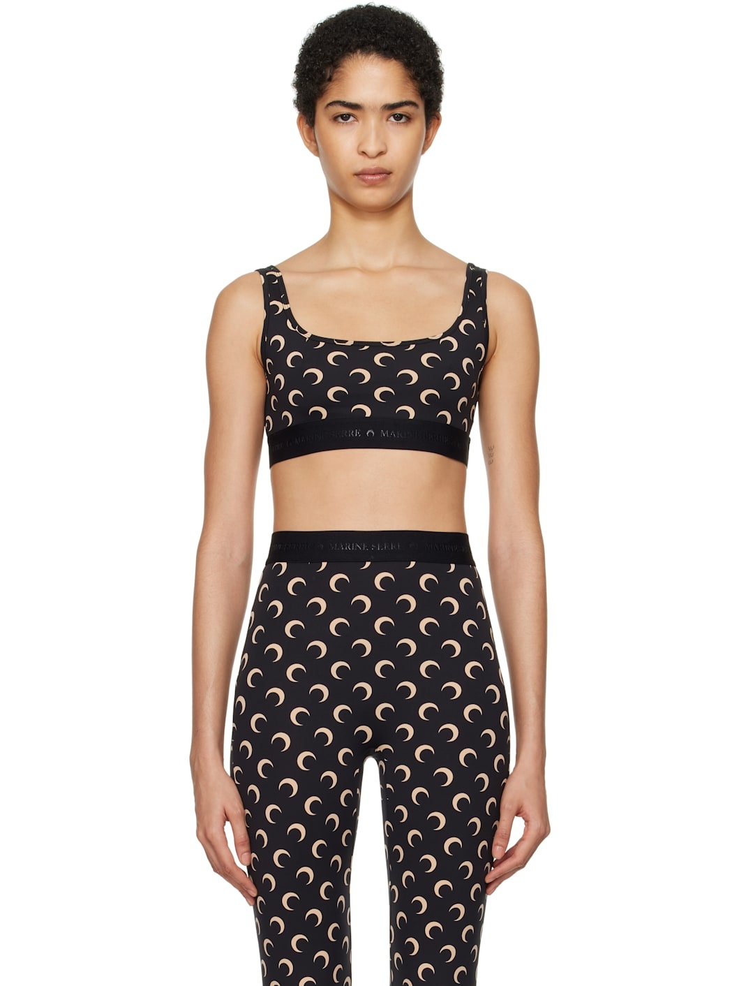 Black & Beige Moon Printed Jersey Sport Bra
