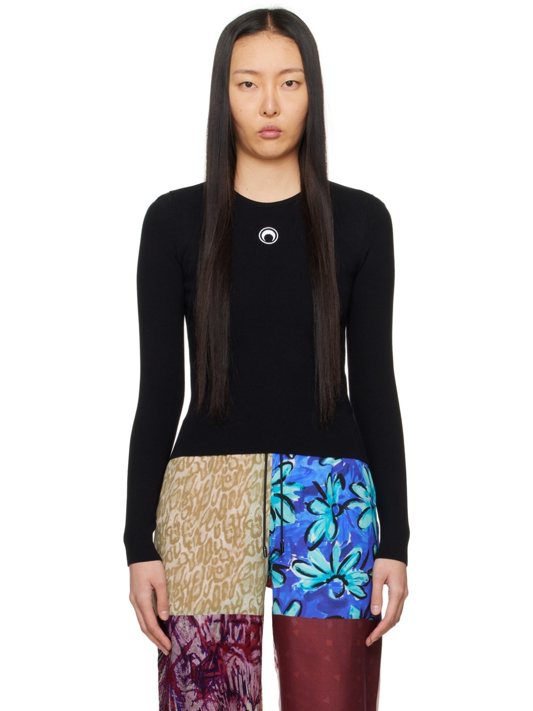 Stretch knit viscose sweater. · Crewneck · Logo embroidered at front Supplier color: Black 98% viscose, 2% elastane. Made in Bulgaria 241020F096012