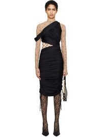 Stretch nylon jersey midi dress. Printed logo pattern and press-stud fastening at stretch GRS-certified recycled nylon jersey bodysuit-style underlay. · Gathering and draping throughout · Layered and asymmetrical construction · Cutouts at sides · Concealed zip closure at side · Ruching and adjustable drawstring at side seams Supplier color: Black Body: 65% polyamide, 35% elastane. Body 2: 88% recycled polyamide, 12% recycled elastane. Made in Romania 242020F052007