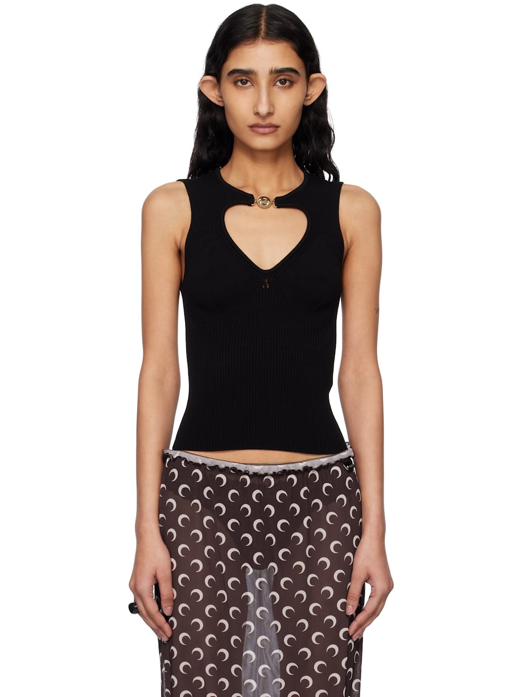 Knit and rib-knit stretch viscose tank top. · Clasp fastening at crewneck · Cutout at chest · Logo-engraved gold-tone hardware Supplier color: Black 70% viscose, 30% elastane. Made in Bulgaria 251020F111018