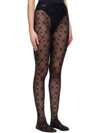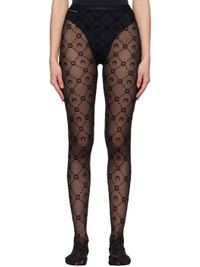 Sheer stretch GRS-certified recycled polyester mesh tights in black. · Logo pattern printed throughout · Scalloped edge at logo-woven elasticized waistband · Logo flag at waistband Supplier color: Black 86% recycled polyamide, 14% elastane. Made in France 251020F076005