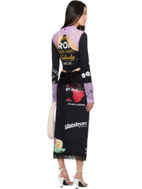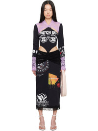 Upcycled cotton jersey and stretch lace midi dress. Graphics and text printed throughout. · Paneled and layered construction · Scalloped edge at V-neck, hem and cuffs · Cutouts at chest, waist, and back · Ruching and gathering at waist · Logo printed at front · Button fastening at back collar · Unlined Each item is unique. Please note that graphics may vary. Supplier color: Graphic black Body 1: 100% cotton. Body 2: 68% polyamide, 22% elastane, 10% acetate. Body 3: 50% viscose, 50% polyamide. Made in France 251020F054002
