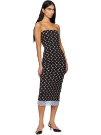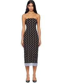 Stretch GRS-certified recycled nylon jersey midi dress. · Logo pattern printed throughout · Elasticized straight neck · Scalloped lace trim at hem Supplier color: Inverse tan 88% recycled polyamide, 12% recycled elastane. Made in Portugal 252020F054010