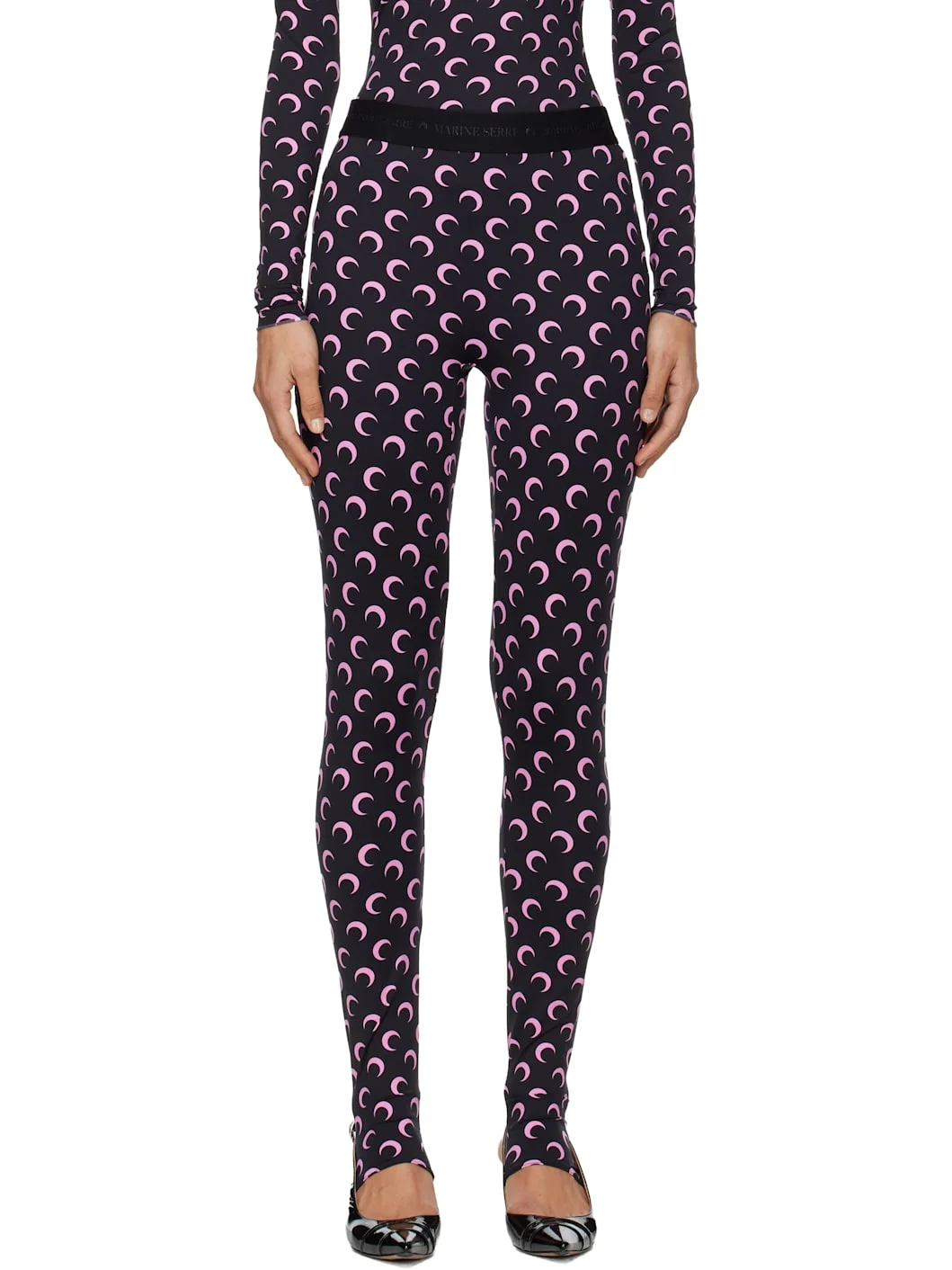 Stretch recycled nylon jersey leggings. · Logo pattern printed throughout · Jacquard logo at elasticized waistband · Stirrup at cuffs Supplier color: Black/Pink 88% recycled polyamide, 12% recycled elastane. Made in Portugal 252020F085013
