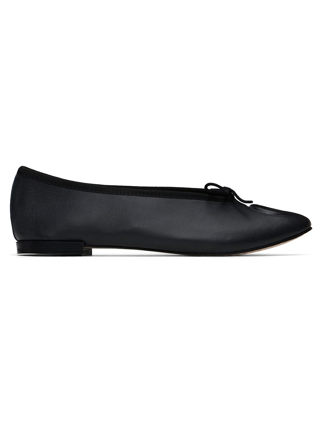LWG-certified nappa calfskin ballerina flats in black. · Logo embossed at toe · Bow accent at vamp · Grosgrain trim at collar · Cotton twill lining · Stacked leather heel with rubber injection · Nubuck sole Part of the Marine Serre x Repetto collaboration. Supplier color: Black Upper: calfskin. Sole: leather, rubber. Made in France 251020F118003