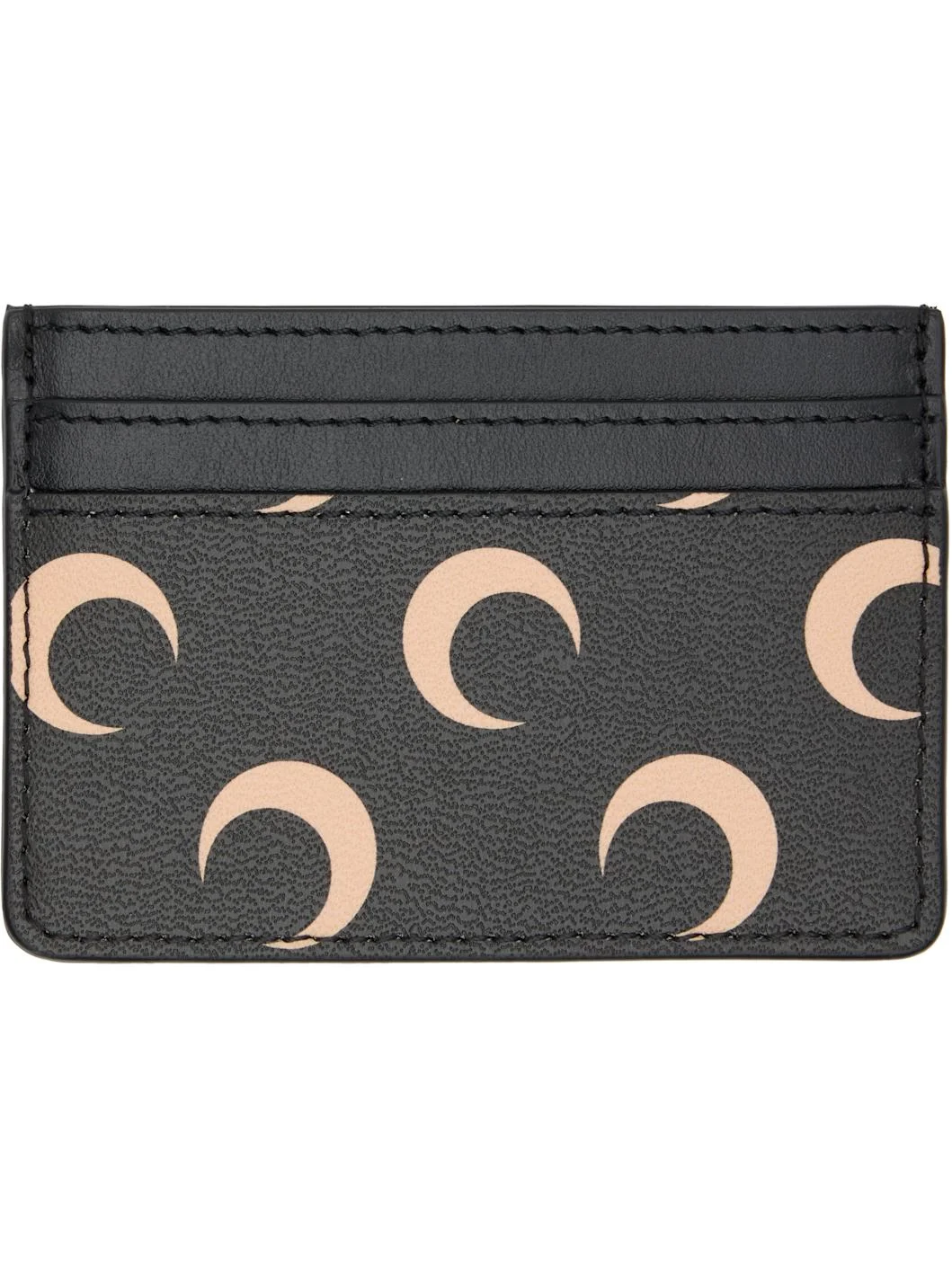 Grained leather card holder. · Logo pattern printed at face and back face · Four card slots · Central note slot · H3" x W4" Supplier color: Moon tan on black Leather. Made in Italy 252020F037001