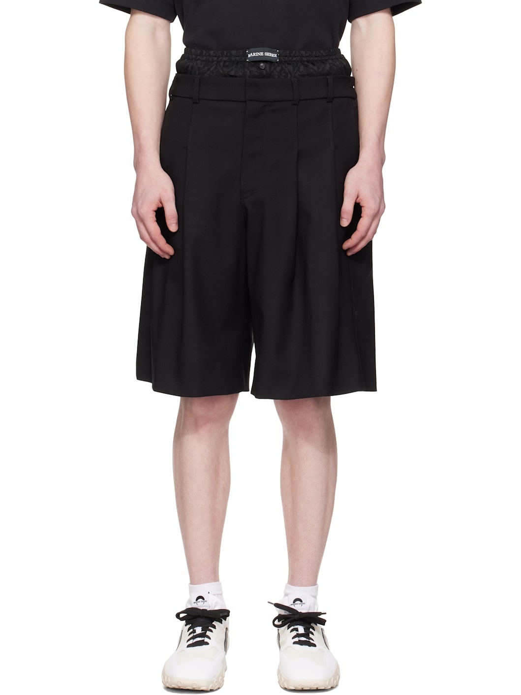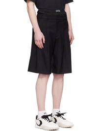 Relaxed-fit stretch virgin wool twill shorts. · Wide-leg · Layered construction · Logo patch at elasticized boxers-style underlay · Belt loops · Four-pocket styling · Zip-fly · Pleats at front Supplier color: Black Body 1: 98% virgin wool, 2% elastane. Body 2: 64% acetate, 35% viscose, 1% elastane. Lining: 100% viscose. Made in Italy 251020M193007