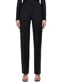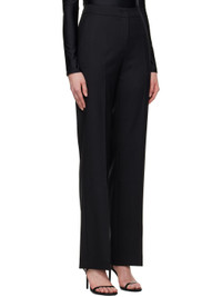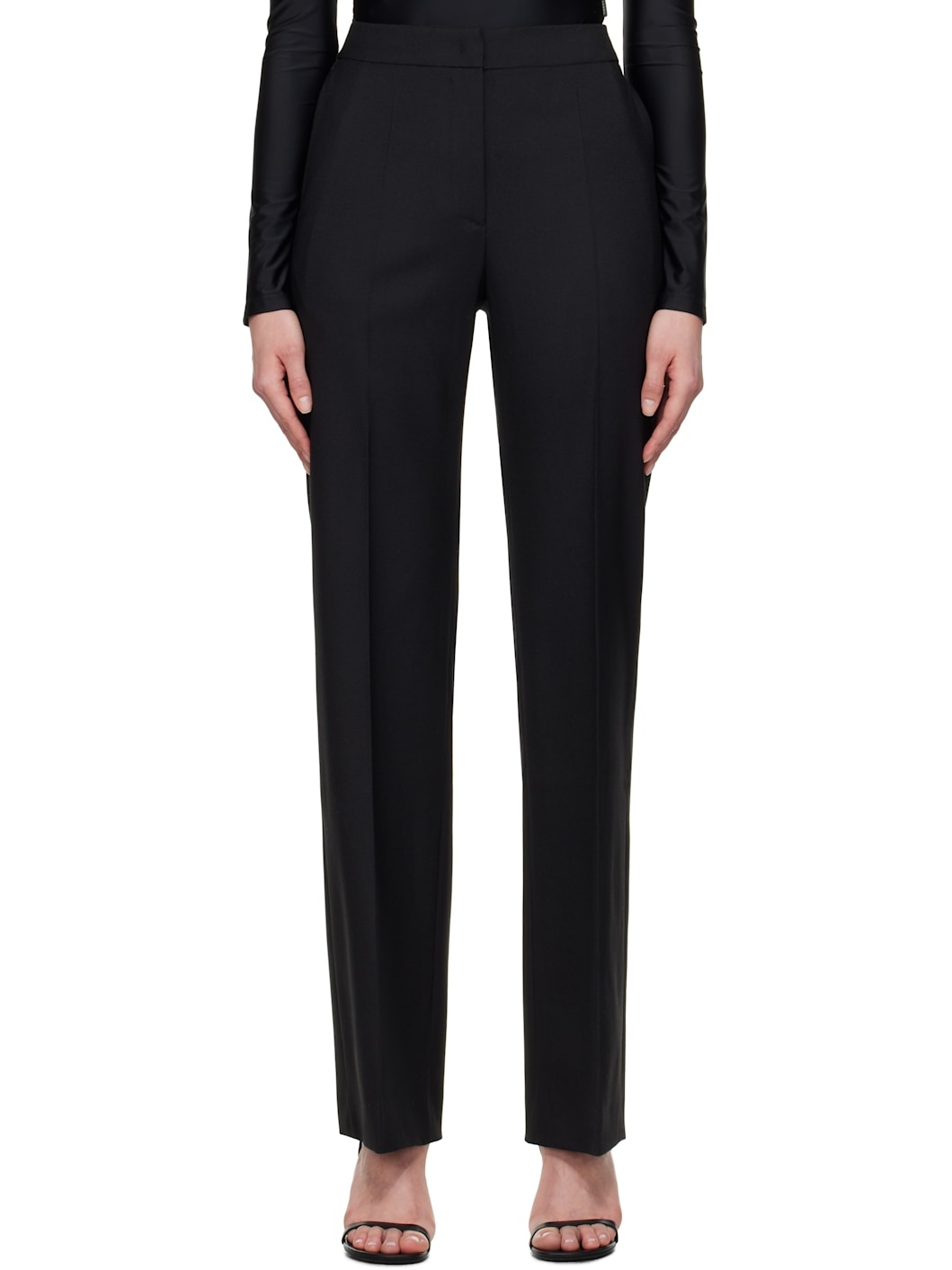 Wide-leg stretch RWS-certified virgin wool twill trousers. · High-rise · Four pocket styling · Zip-fly · Creased legs · Logo patch at back waistband Supplier color: Black Body: 98% virgin wool, 2% elastane. Lining: 100% viscose. Made in Italy 251020F087002