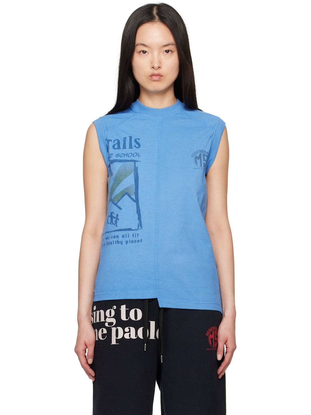 Upcycled cotton jersey tank top. Graphics and text printed throughout. · Paneled construction · Rib-knit crewneck and armscyes · Logo printed at chest · Asymmetrical hem Each item is unique. Please note that graphics may vary. Supplier color: Light blue 100% cotton. Made in Portugal 251020F111003