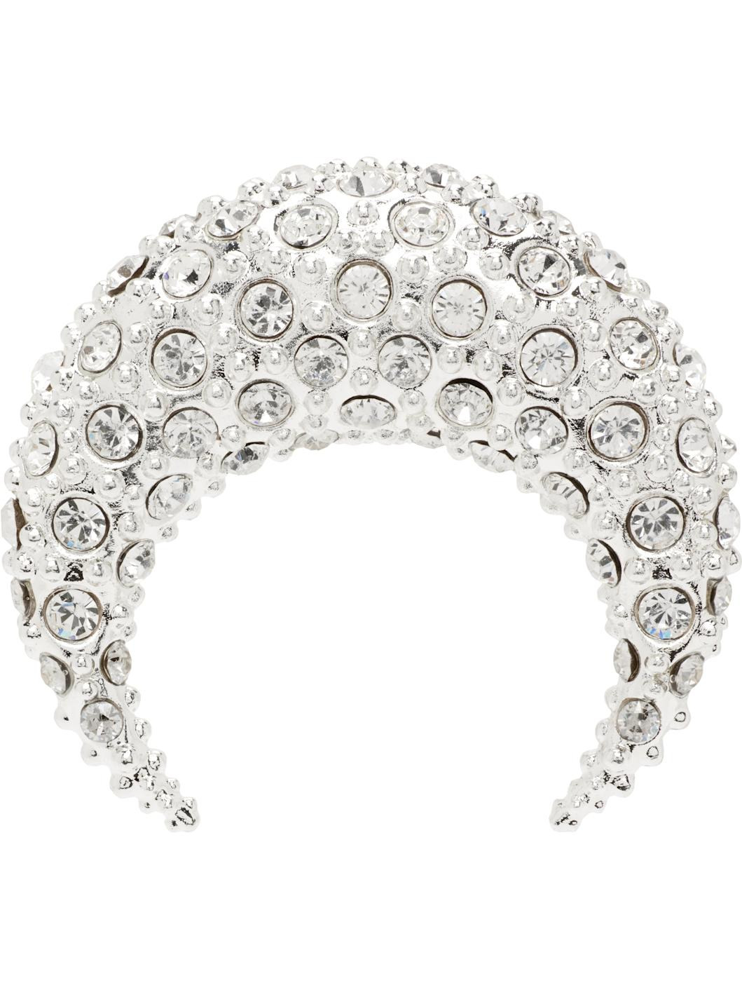 Single stud earring in sterling silver-plated brass. · Bezel-set Swarovski crystals at face · Post-stud fastening · H1.5" x W1.5" Supplier color: Shiny 925 sterling silver-plated brass, crystal. Made in France 252020F022003