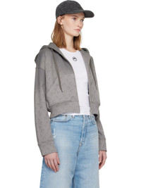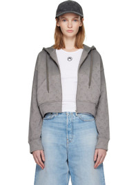 French terry hoodie. · Fading and printed logo pattern throughout · Drawstring at hood · Zip closure · Patch pockets at front · Rib-knit cropped hem and cuffs Supplier color: Dark grey Body: 60% cotton, 20% organic cotton, 20% recycled cotton. Trim: 98% organic cotton, 2% elastane. Made in Portugal 252020F097005