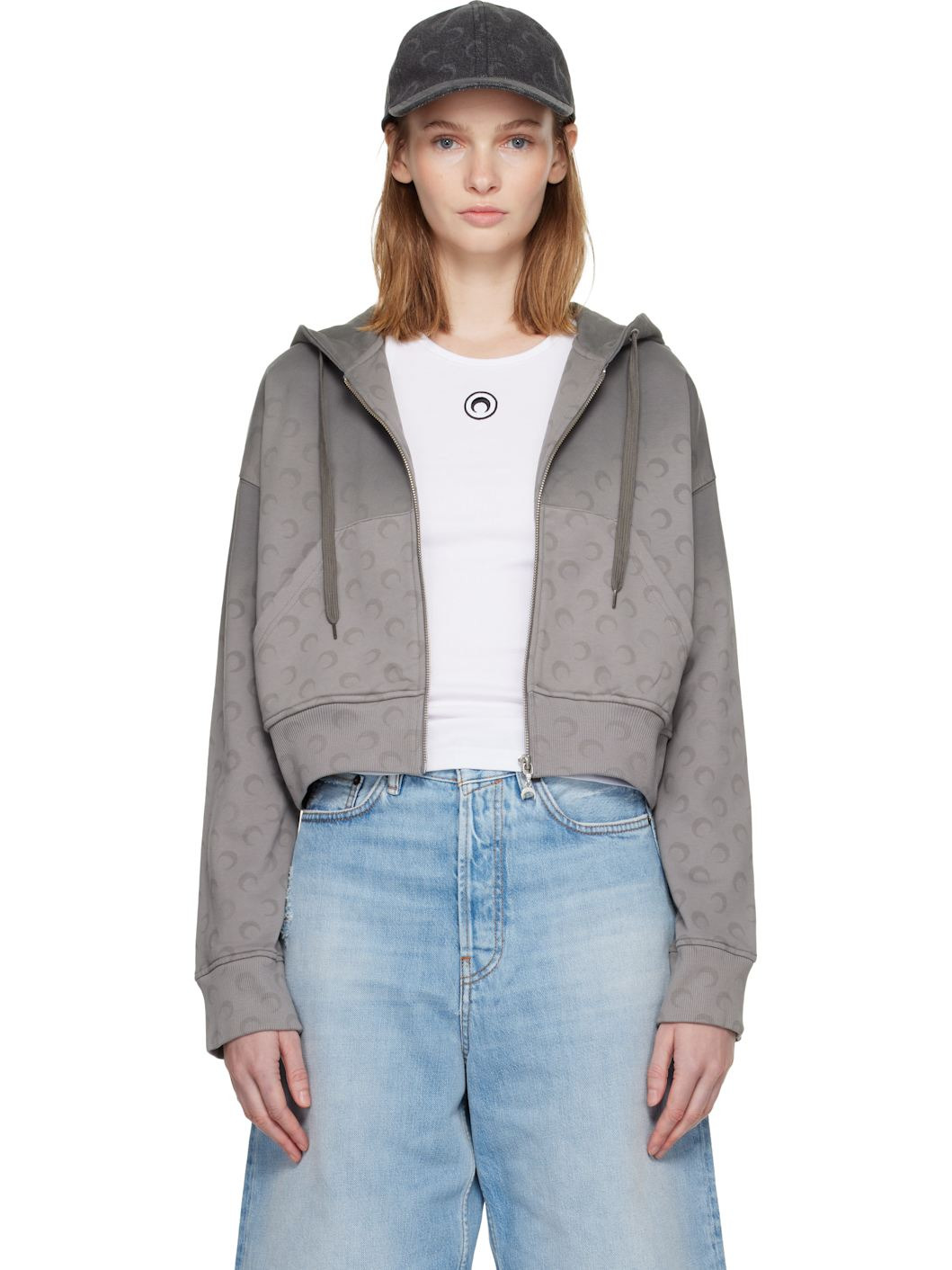 Gray Faded Moon Fleece Cropped Zipped Hoodie