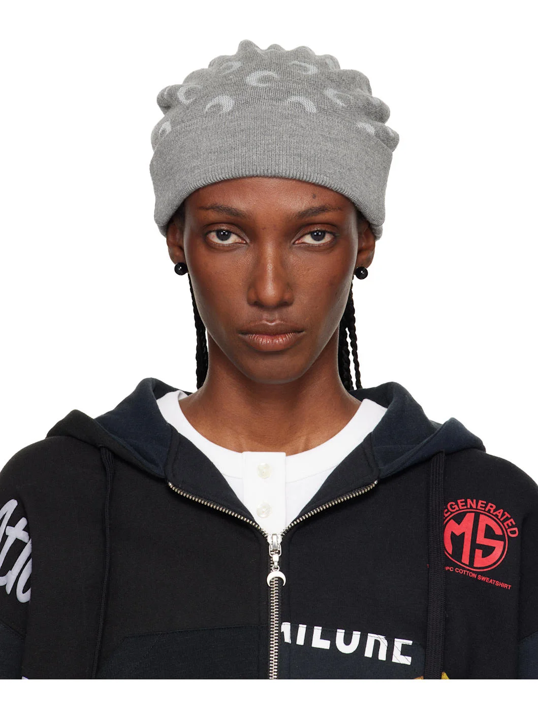 Gray Moon Jacquard Knit Beanie