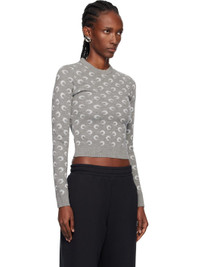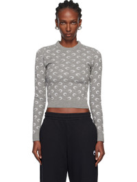 Knit virgin wool-blend sweater. · Jacquard logo pattern throughout · Rib-knit crewneck, hem, and cuffs · Cropped hem Supplier color: Misty grey 50% virgin wool, 50% viscose. Made in Italy 252020F096006