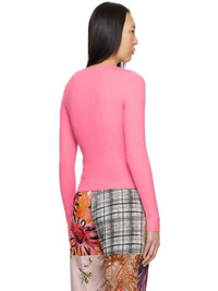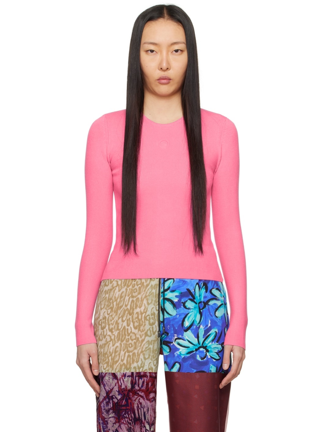 Stretch knit viscose sweater. · Crewneck · Logo embroidered at front Supplier color: Pink 98% viscose, 2% elastane. Made in Bulgaria 241020F096010
