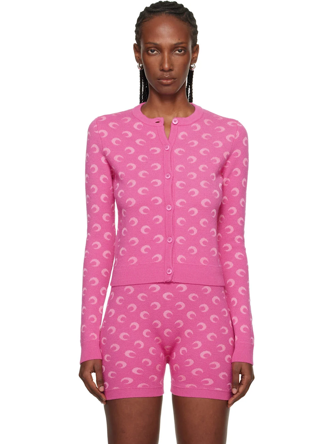 Pink Moon Jacquard Knit Fitted Cardigan