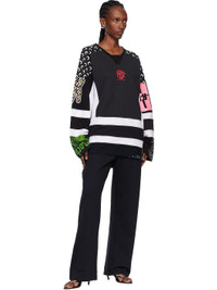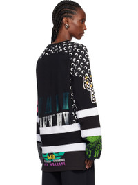 Upcycled cotton jersey T-shirt. · Logo pattern and graphics printed throughout · Paneled construction · Rib-knit V-neck · Logo printed at chest · Vented side seams · Saddle shoulders Each item is unique. Please note graphics may vary. Supplier color: Black Body: 100% cotton. Trim: 98% organic cotton, 2% elastane. Made in Portugal 252020F110063