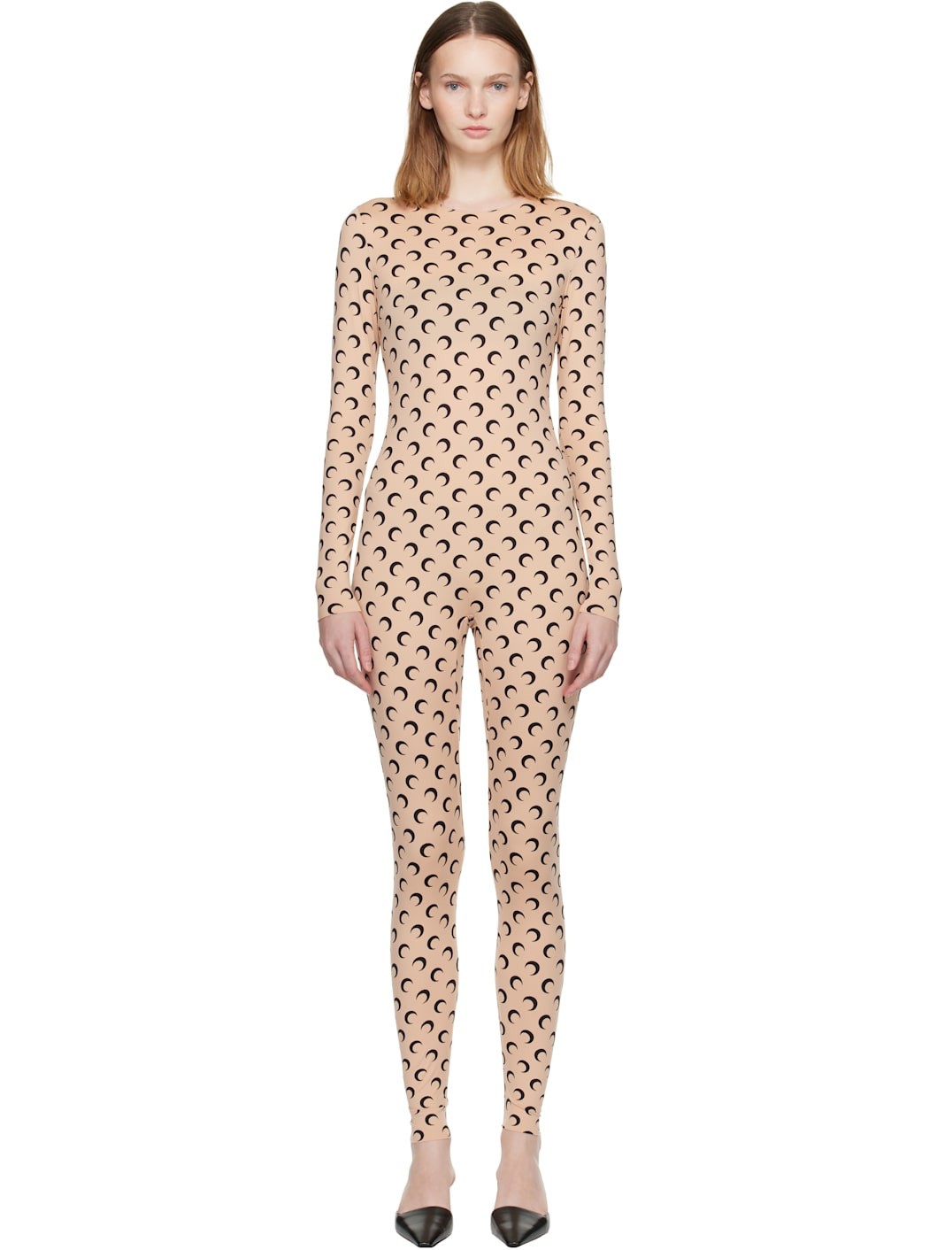 Stretch recycled nylon jersey jumpsuit. · Logo pattern printed throughout · Crewneck · Raw edge at cuffs · Zip closure at back Supplier color: Moon black on tan 88% recycled polyamide, 12% recycled elastane. Made in Portugal 252020F070000