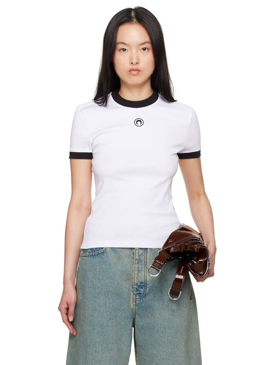 White Moon Logo Jersey Fitted T-Shirt