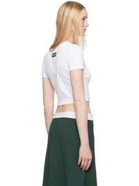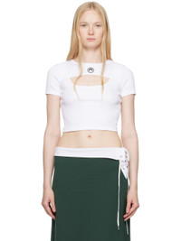 Stretch GOTS-certified organic cotton ribbed jersey T-shirt. · Crewneck · Cutout and embroidered logo at chest · Cropped hem · Logo patch at back collar Supplier color: White cotton 95% organic cotton, 5% elastane. Made in Turkey 251020F110014
