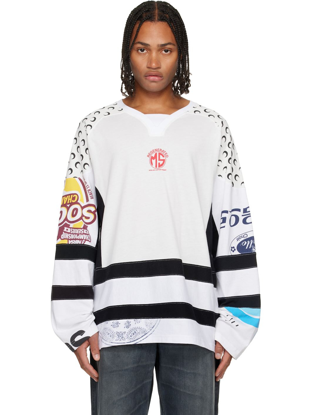 Cotton jersey T-shirt. · Stripes, logo pattern, and graphics throughout · Rib-knit V-neck · Logo printed at chest · Raglan sleeves · Vented side seams Supplier color: White Body: 100% cotton. Trim: 98% cotton, 2% elastane. Made in Portugal 252020M213004