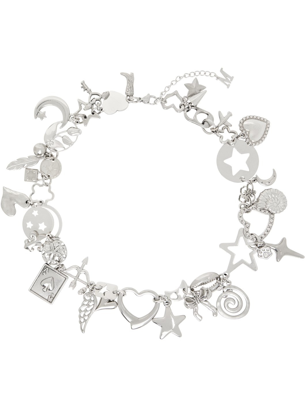 Modified cable chain necklace in silver-tone stainless steel. · Graphic charms throughout · Logo charm at adjustable lobster-clasp fastening · L17.5" Supplier color: Silver Stainless steel. Made in Australia 252431F023008