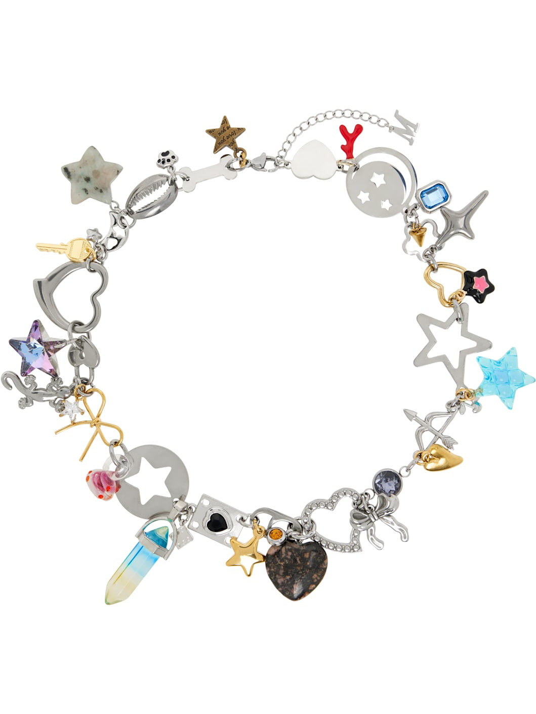 Modified cable chain necklace in stainless steel. · Graphic charms with glass crystals, shells, and pearls throughout · Adjustable lobster-clasp fastening · L16" Supplier color: Multi Stainless steel, glass, shell, pearl. Made in Australia 252431F023018