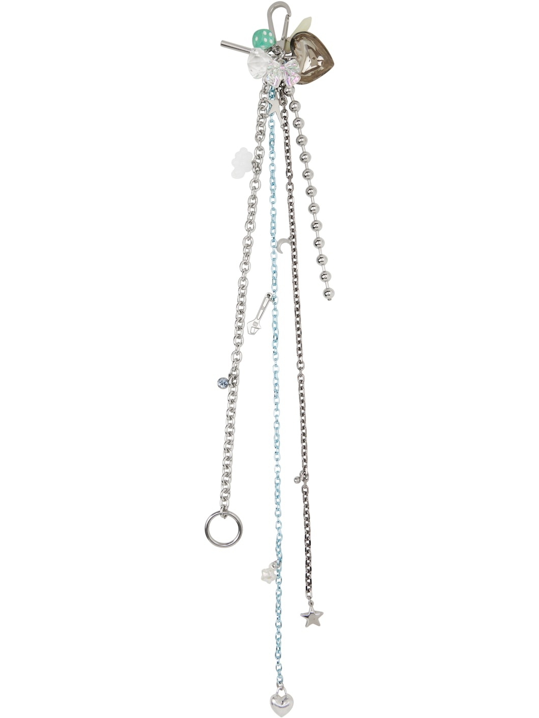 Tiered ball and cable chain keychain in blue and silver-tone stainless steel. · Graphic charms throughout · Lanyard clasp and O-ring · L37" Each item is unique. Please note that charms may vary. Supplier color: Aqua Stainless steel, enamel. Made in Japan 251431F025000